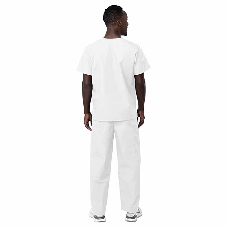 Conjunto de exfoliante experto de la mejor calidad para hombre, Top exfoliante con cuello en V de color blanco y conjunto de pantalones exfoliantes con cordón cónico