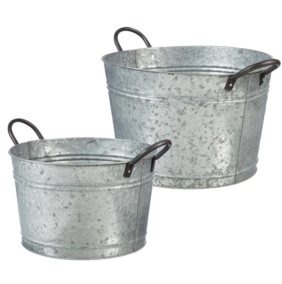 Maceta de Metal galvanizado de la mejor calidad, forma ovalada para el hogar, balcón, guardería, decoración de jardín, maceta con asa