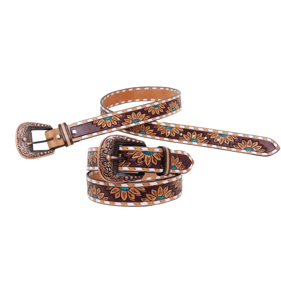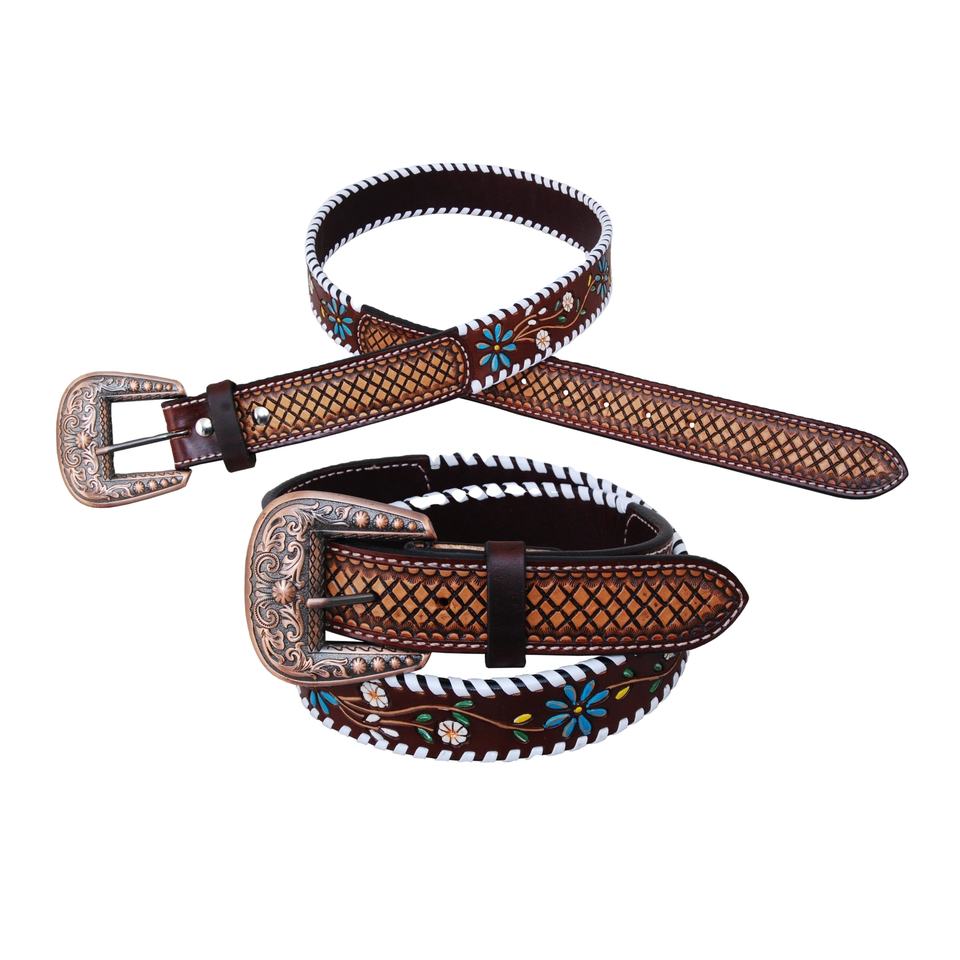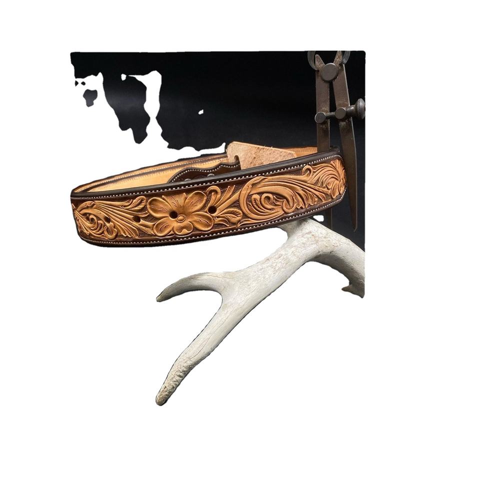 Cinturón de vaquero occidental de diseñador de cuero de vaca genuino de la mejor calidad con diseño en relieve floral Proveedor de fabricante para hombres y mujeres