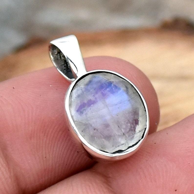 Regalo de la mejor calidad para niñas, colgante de diseño Simple de Plata de Ley 925, colgante de collar de piedras preciosas de piedra lunar con joyería de sello 925