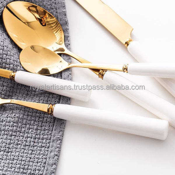 Juego de Cubiertos de Acero Inoxidable Chapado en Oro de la Mejor Calidad, Mangos de Resina Multicolor, Ecológicos, Desechables, con Logotipo Personalizado para Regalos