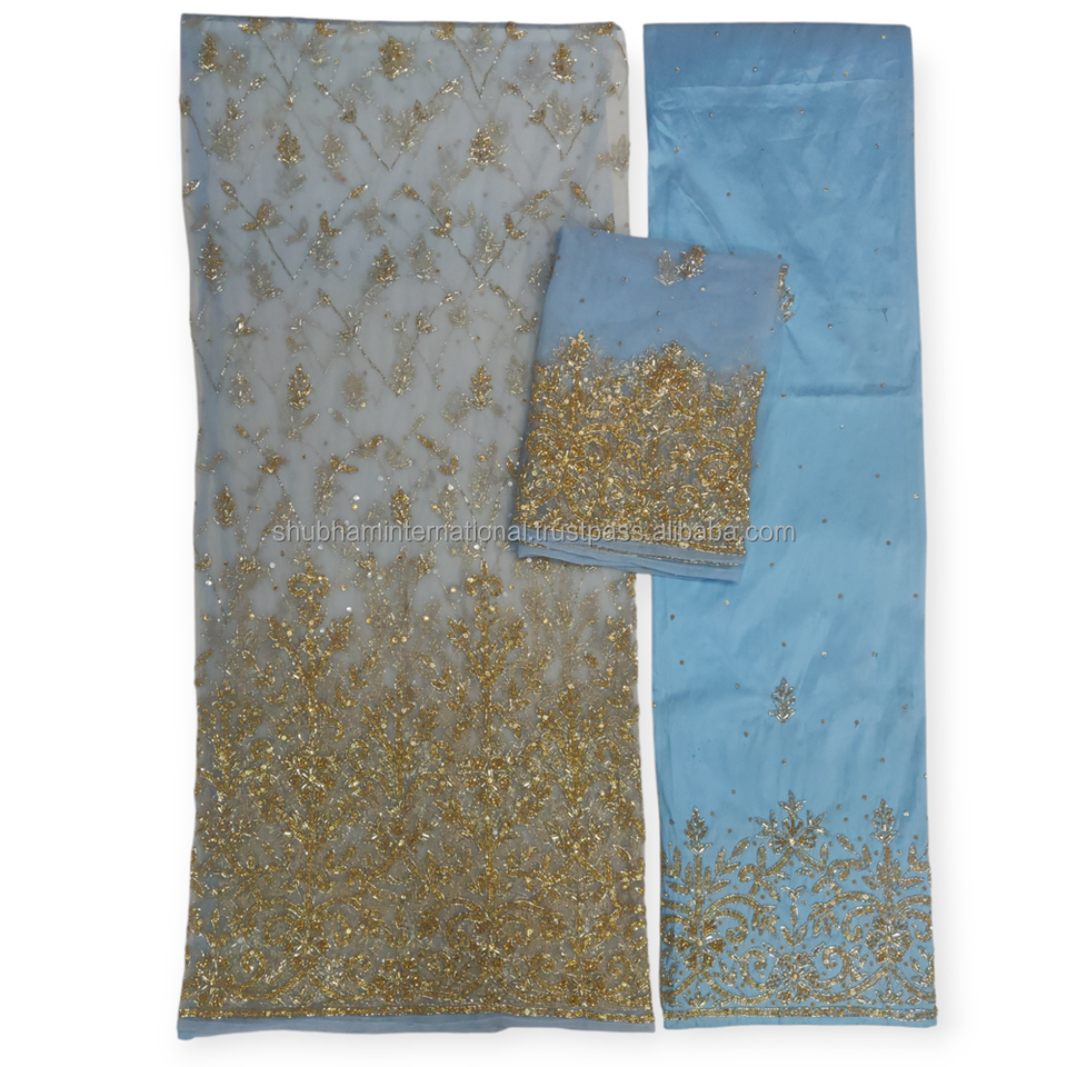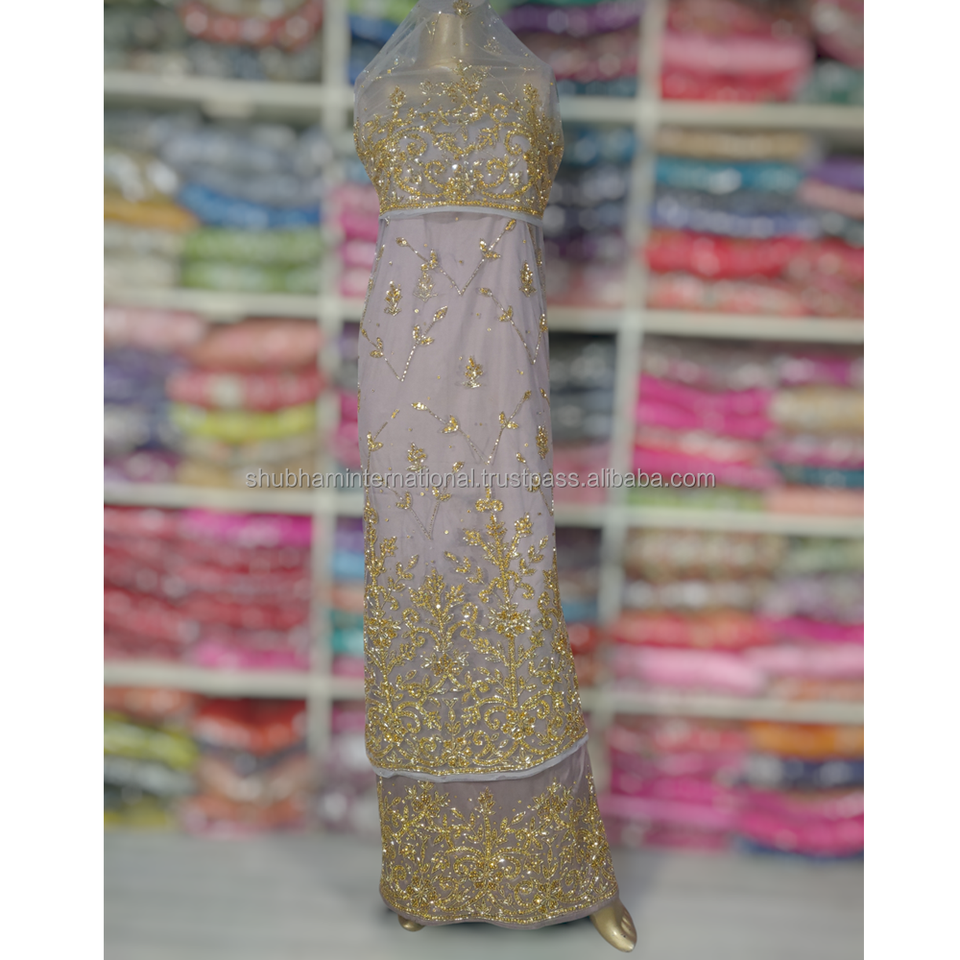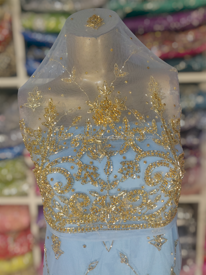 Característica:Encaje neto con cuentas pesadas + tela de seda