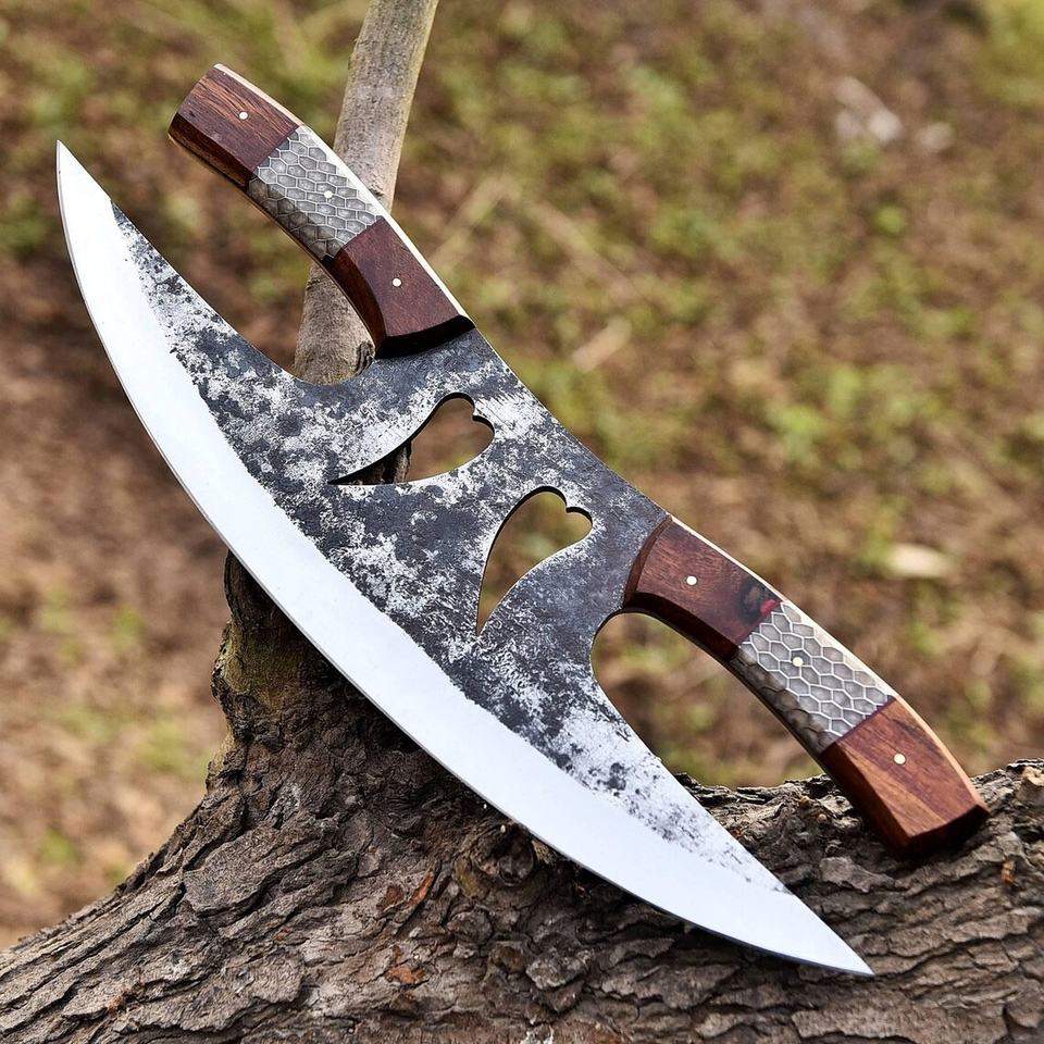 Mejor calidad forjado a mano OEM personalizado hecho a mano Damasco hoja Chef cocina Ulu cuchillo con Funda de cuero al por mayor directo de fábrica