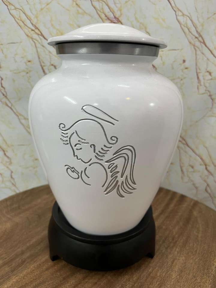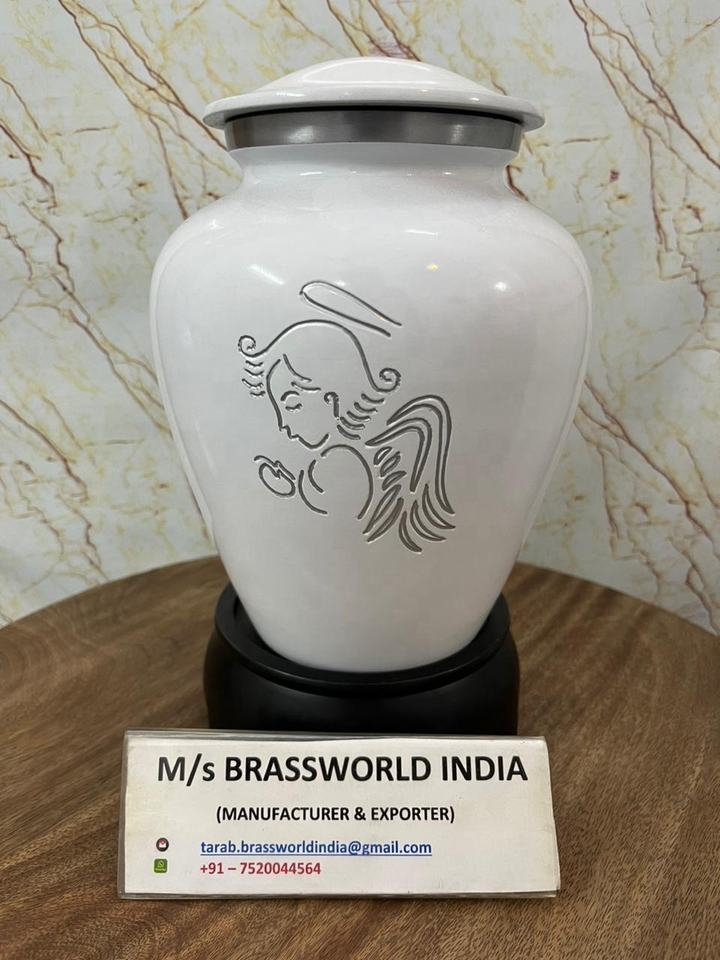 Urna de cremación de Metal blanco Ángel hecha a mano de la mejor calidad, precio al por mayor para cenizas humanas, suministros funerarios