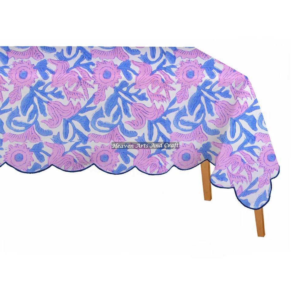 Mantel Rectangular con Borde Festoneado, Hecho a Mano con Estampado en Bloque, de la Mejor Calidad, Elegante para el Día a Día, Fácil de Mantener