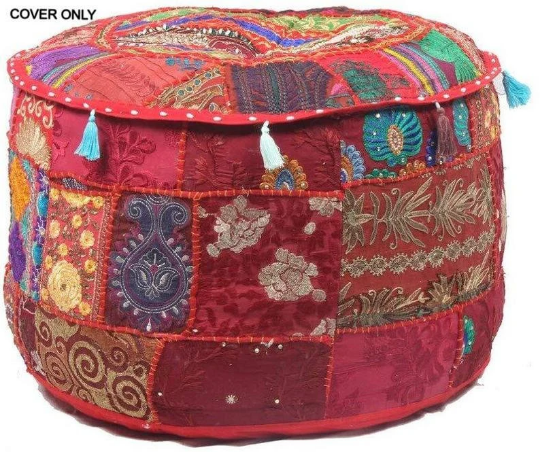 Otomana Hecha a Mano de la Mejor Calidad, Taburete, Estilo Bohemio, Bordado, Patchwork, Vintage, Sari, Estilo Boho, Gitano, Indio, Funda para Otomana