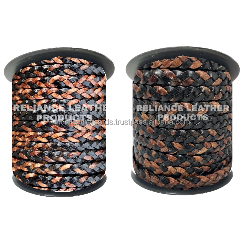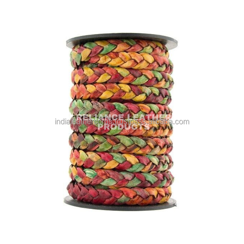 Multi Color Flat Braided 3 Ply Leather CordNúmero de Modelo