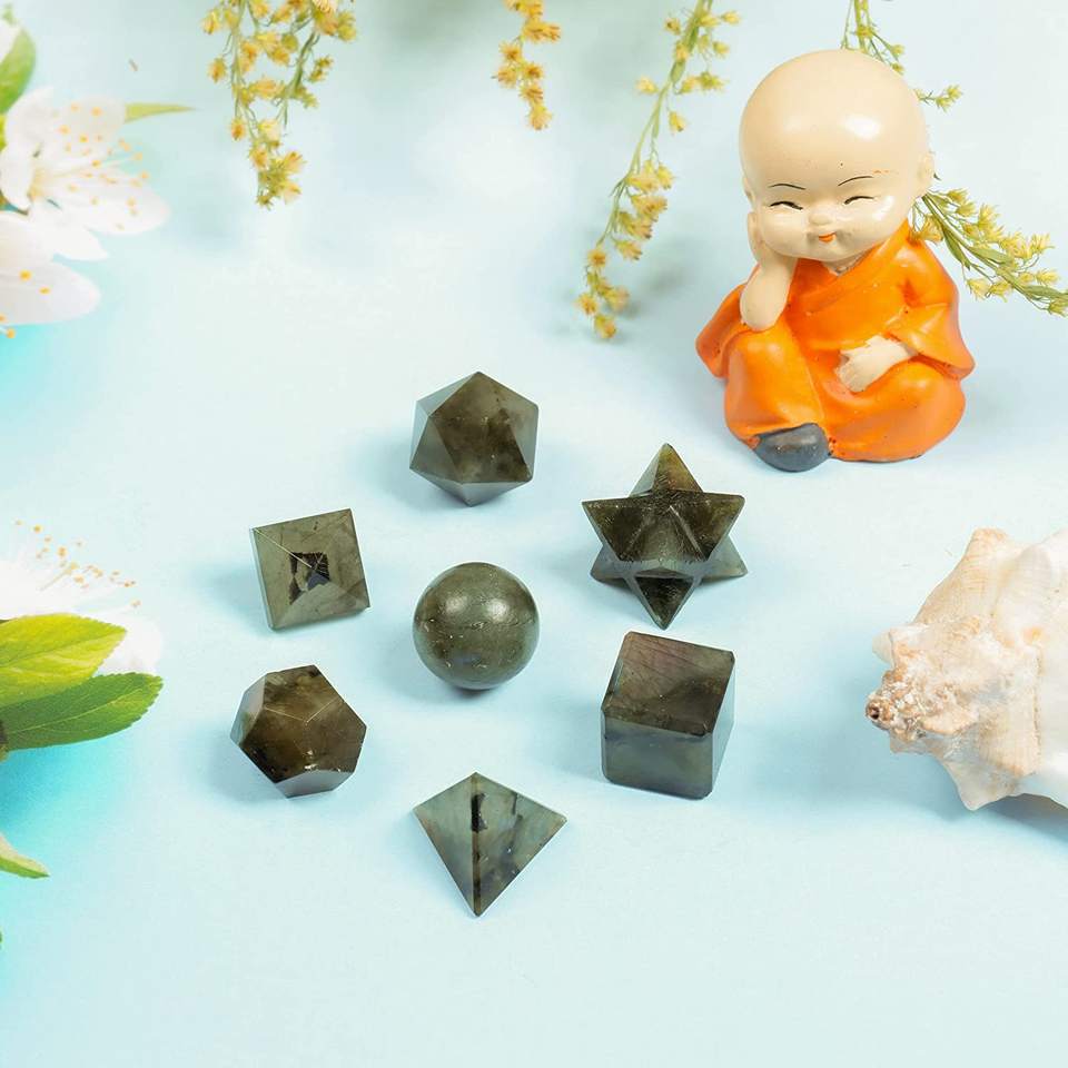 Piedra labradorita de la mejor calidad, juego de geometría sagrada para curación, 7 piezas, precio al por mayor: labradorita, juego de Geometría Sagrada