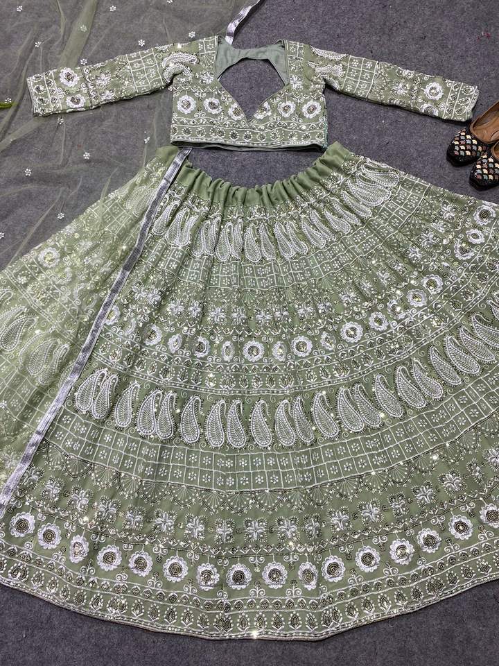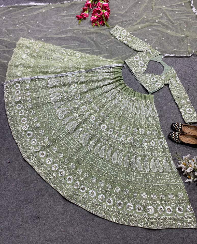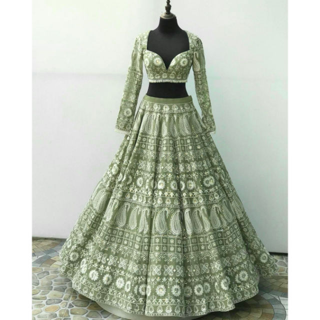 Nombre del producto:Última colección Faux Georgette bordado trabajo Lehenga Choli