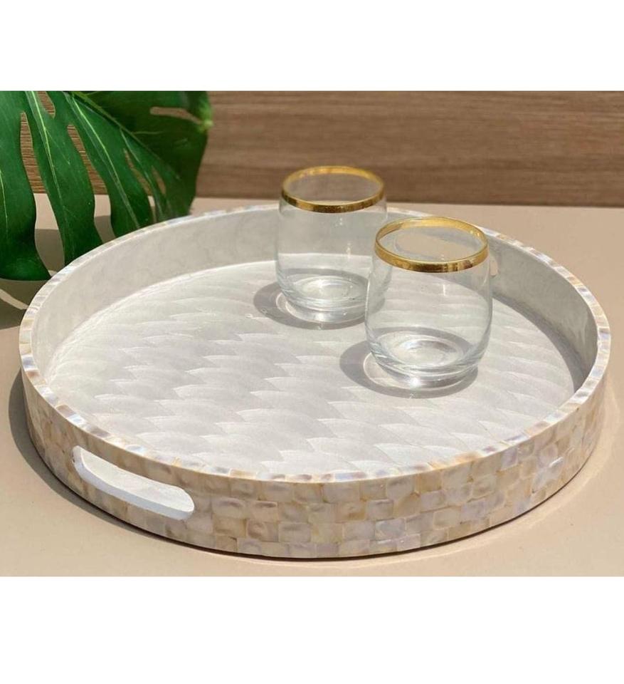 Bandeja de Servicio Decorativa de Nácar de Primera Calidad para Mesa de Comedor, Servicio de Café y Decoración del Hogar, Disponible para la Venta