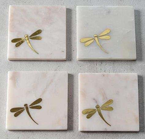 Juego de posavasos de mármol de la mejor calidad con base de fieltro y grabados decorativos para decorar superficies de mesas en comedores.