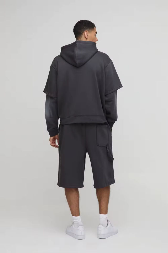 Nombre del producto:Conjunto de Sudadera con Capucha y Pantalones Cortos para Hombre