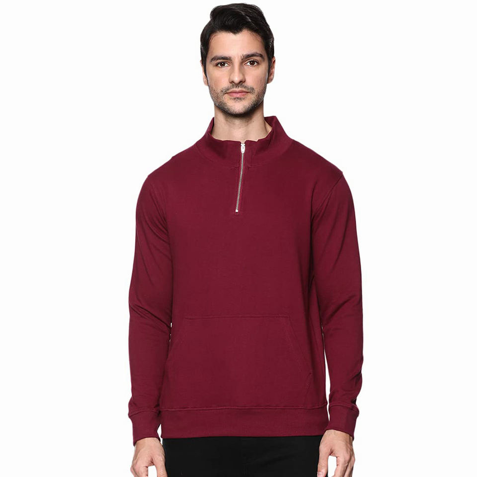 Sudaderas con capucha de media cremallera de algodón y poliéster con estampado a prueba de viento para hombre de la mejor calidad Color granate con logotipo personalizado