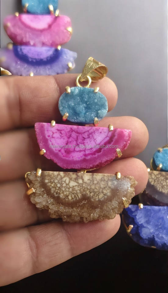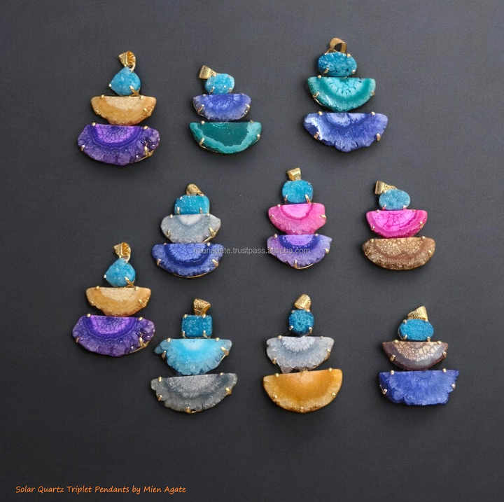 Nombre del producto:Piedra preciosa natural de cuarzo solar trillizo colgante