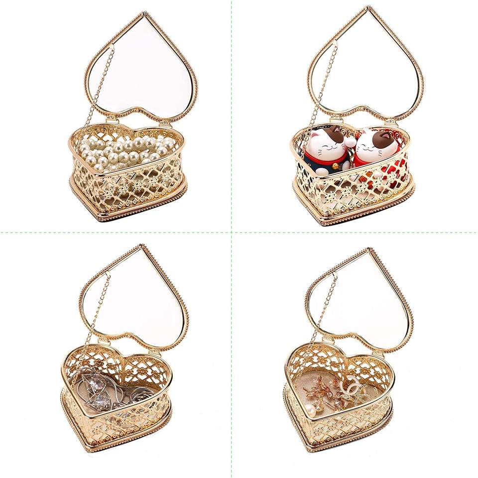 Joyero de metal decorativo hecho a mano nuevo de la mejor calidad con vidrio antiguo para decoración de bodas