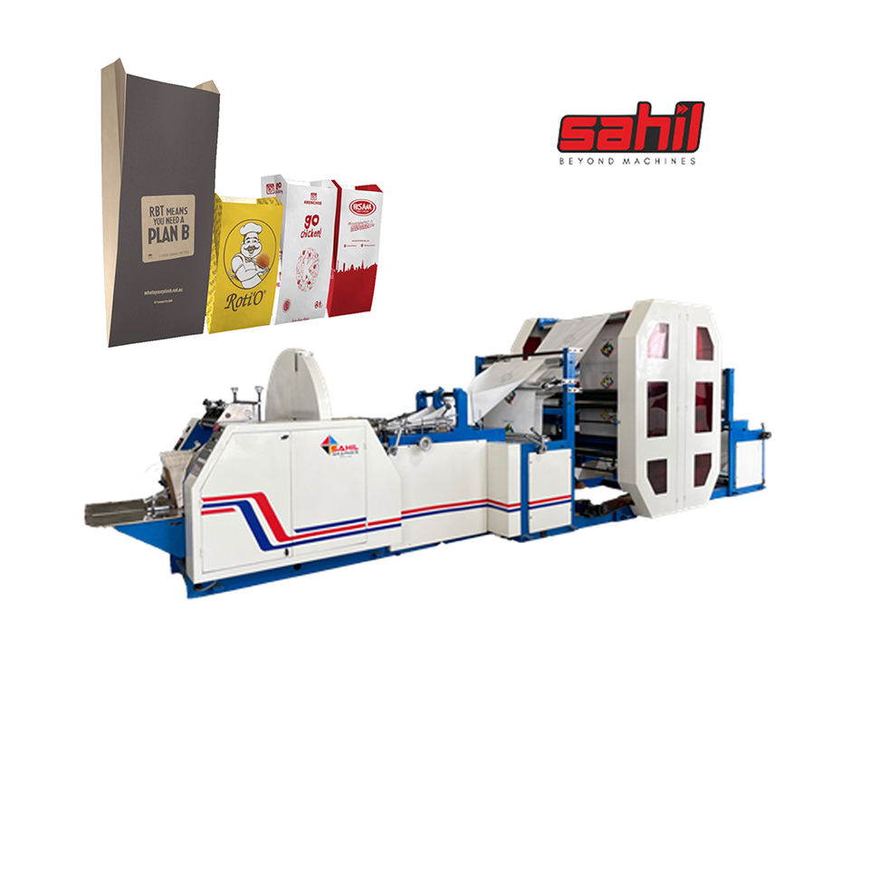 Máquina para fabricar bolsas de papel con fondo en V y impresión en línea a 4 colores