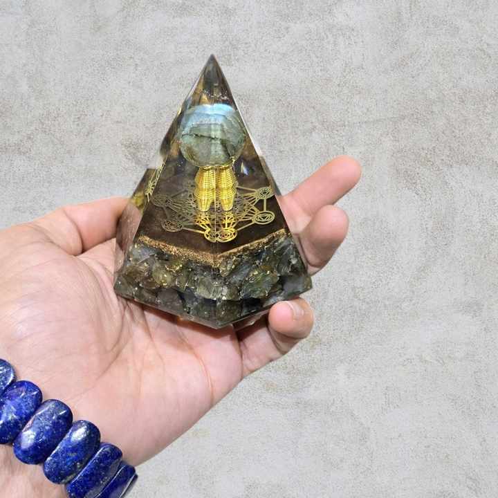 Piedra Preciosa de Labradorita de Primera Calidad, Esfera Piramidal Hexagonal, para Meditación, Protección EMF, Tallada a Mano, Portátil