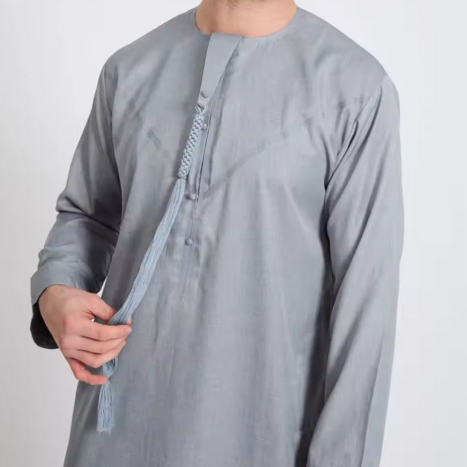 Modelo promocional de la mejor calidad Qatar musulmán Abaya islámico hombres de talla grande algodón transpirable Color liso Thobe hecho en Pakistán