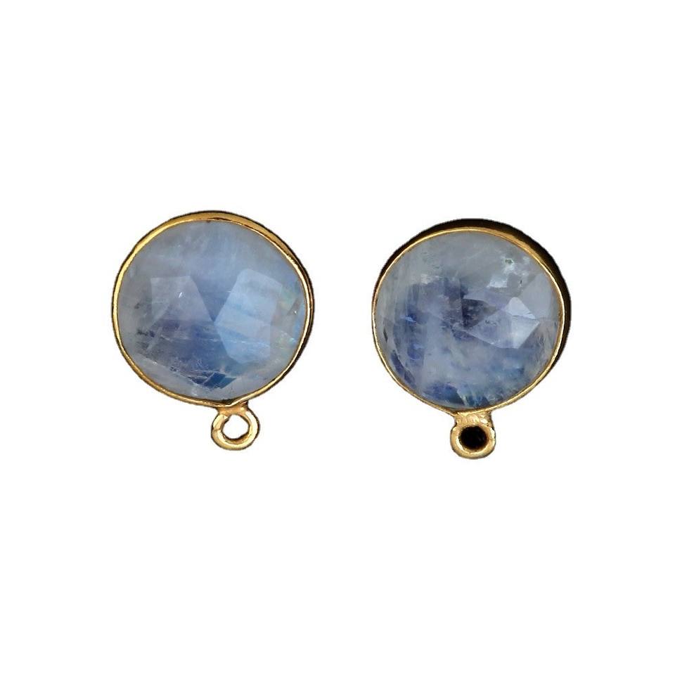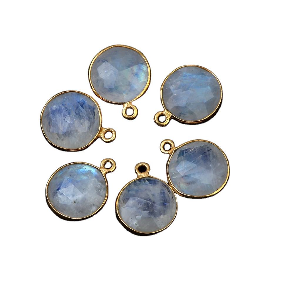 Nombre del Producto:Colgante con dije de bisel chapado en oro plateado de 12 mm con piedra lunar arcoíris natural