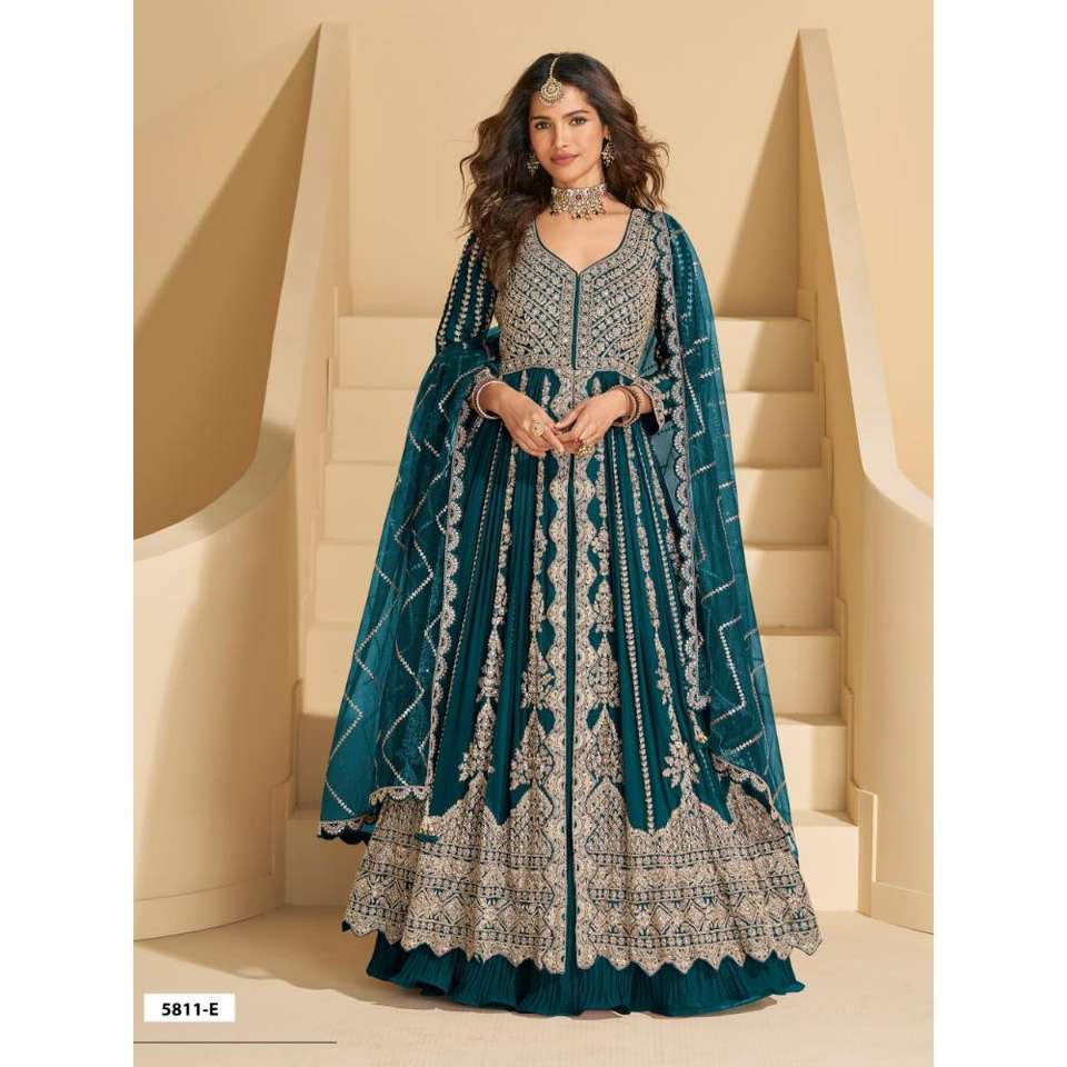 Traje Anarkali Tradicional de la Mejor Calidad con Bordados Elaborados, Diseño de Diseñador, Largo Regular, para Fiestas, Regalos, Venta de Exportación