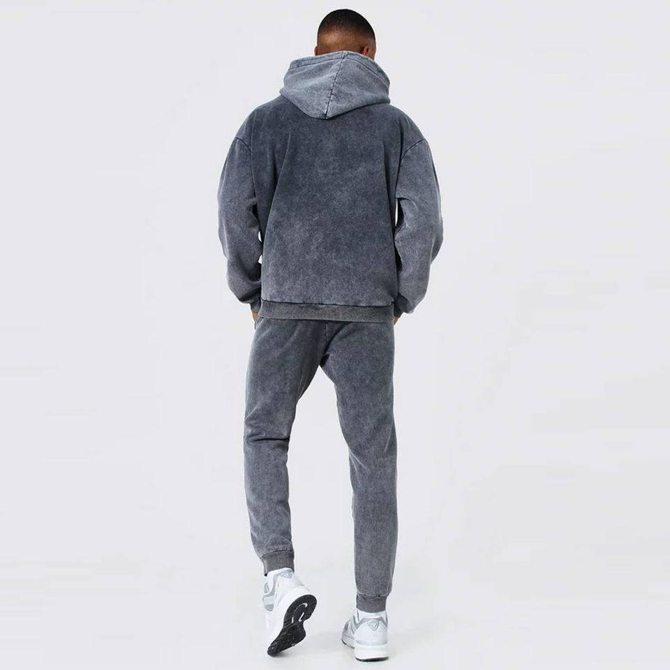 Chándal de lavado ácido de diseño único de la mejor calidad, venta en línea, tendencia industrial, traje de sudor desgastado con estampado desgastado por el sol