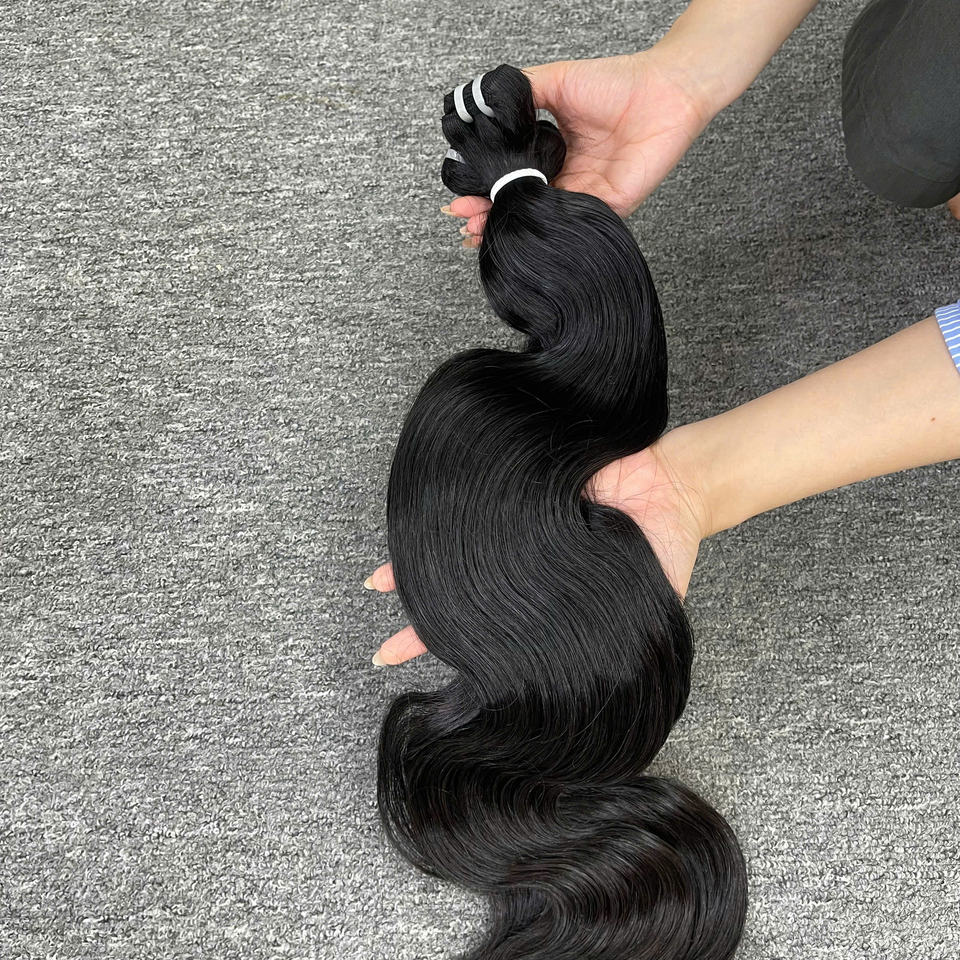 Extensiones de Cabello Humano Virgen Remy Vietnamita de la Mejor Calidad, Ondulado, Doble Trama a Máquina, Solo Color Más Oscuro, Cabello con Cutícula Intacta