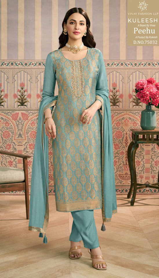 Traje Salwar Pihu Vinay Kuleesh de la Mejor Calidad con Jacquard Simar Pesado y Cuello con Trabajo Khatli para Fiestas y Recepciones de Mujeres