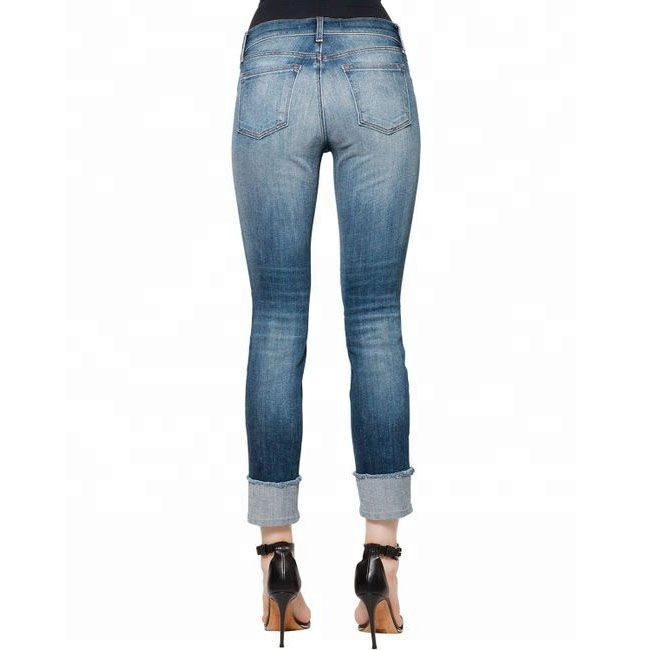 Las mujeres de la mejor calidad usan pantalones vaqueros de pierna ancha pantalones vaqueros de mujer hechos de algodón de moda en stock