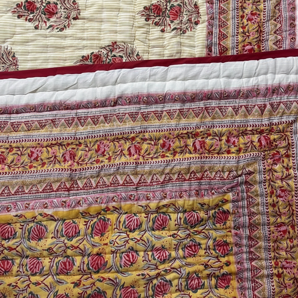 Nombre de los Productos:Colcha Kantha Orgánica Estampada a Mano