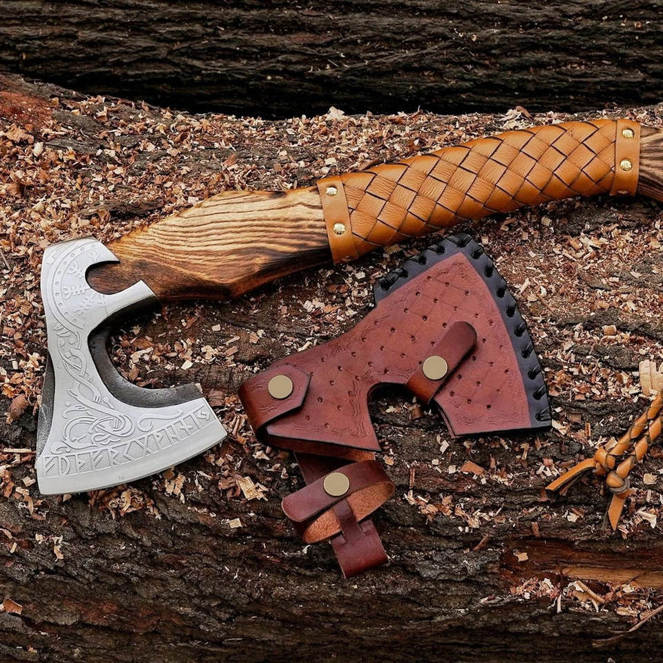Hachas de Damasco Forjadas a Mano con las Mejores Tarifas, Estilo Vikingo, Hacha Industrial para Bricolaje con Mangos de Madera y Cuero para Cortar