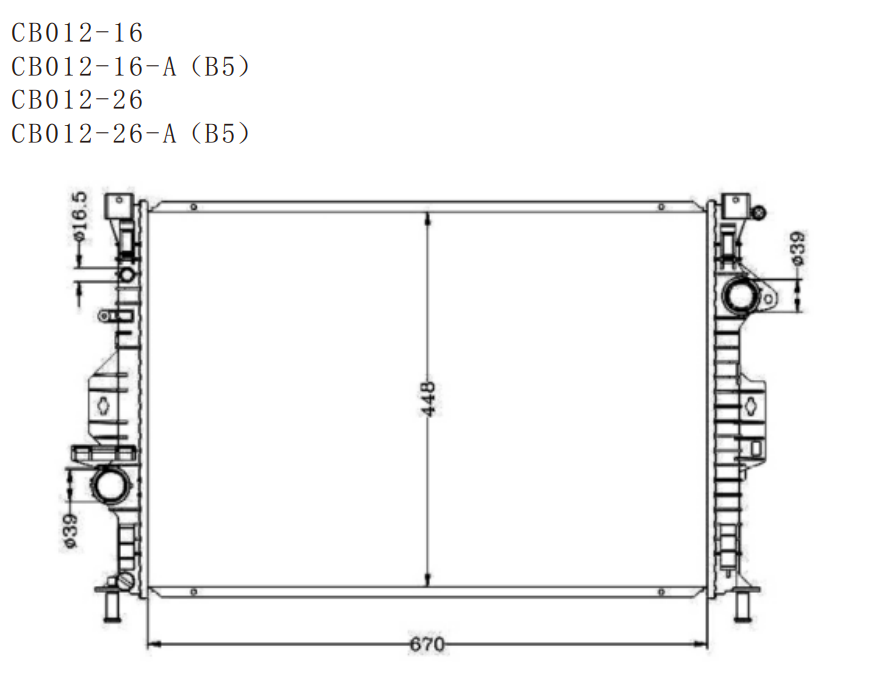 Material auto del radiador:Tanques de plástico con núcleo de aluminio