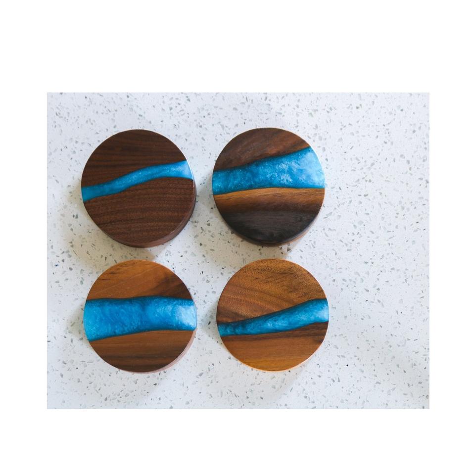 El mejor posavasos redondo de piedra de resina epoxi y uso hecho a mano Diseño de madera y arte Taza de té Posavasos de madera para uso de bebidas