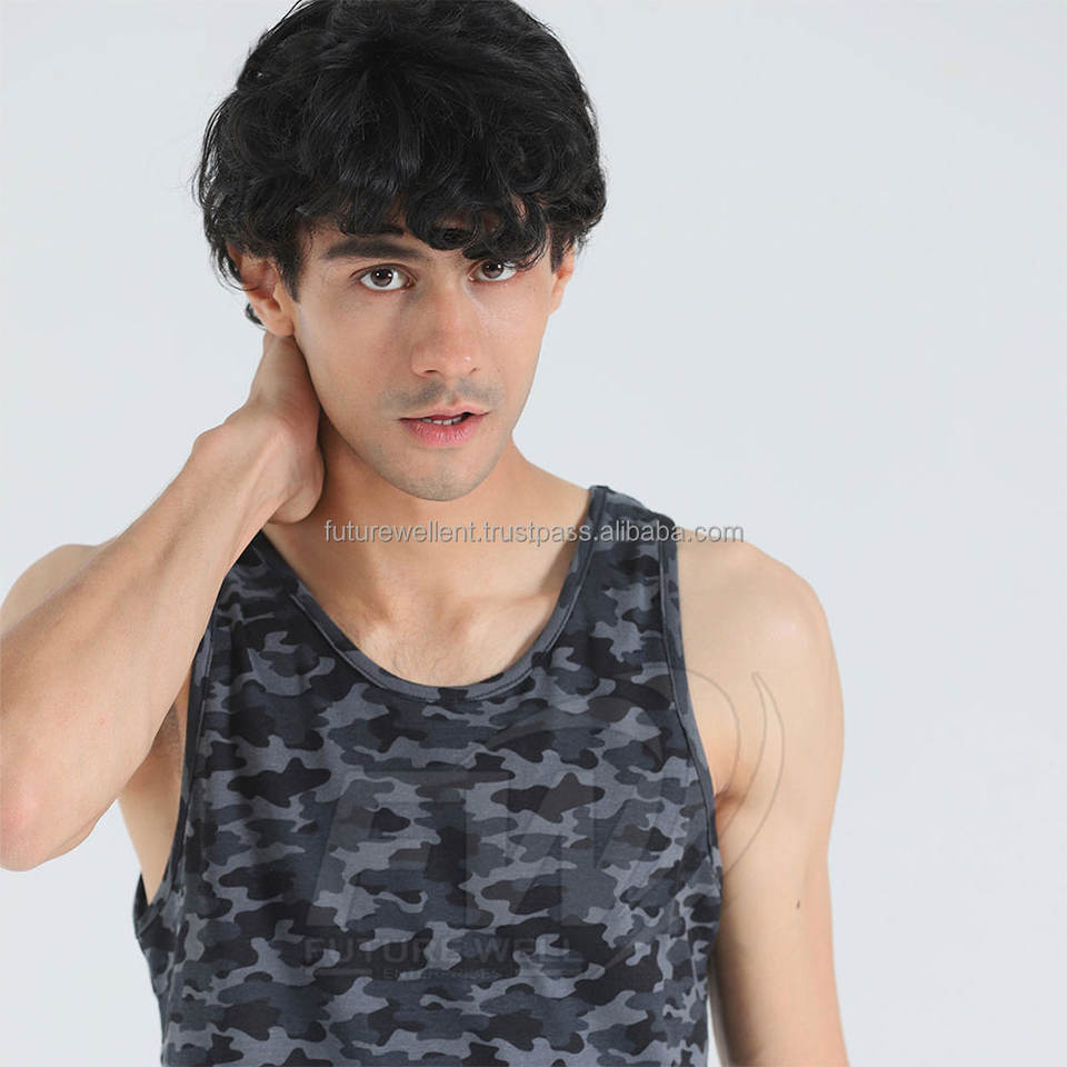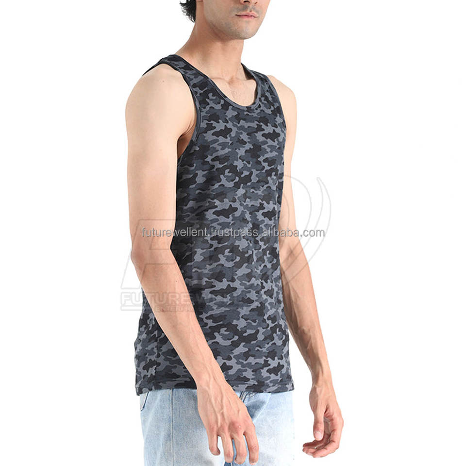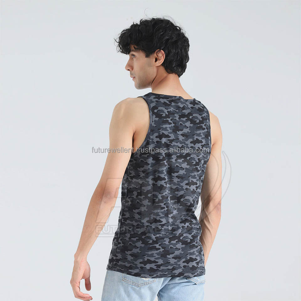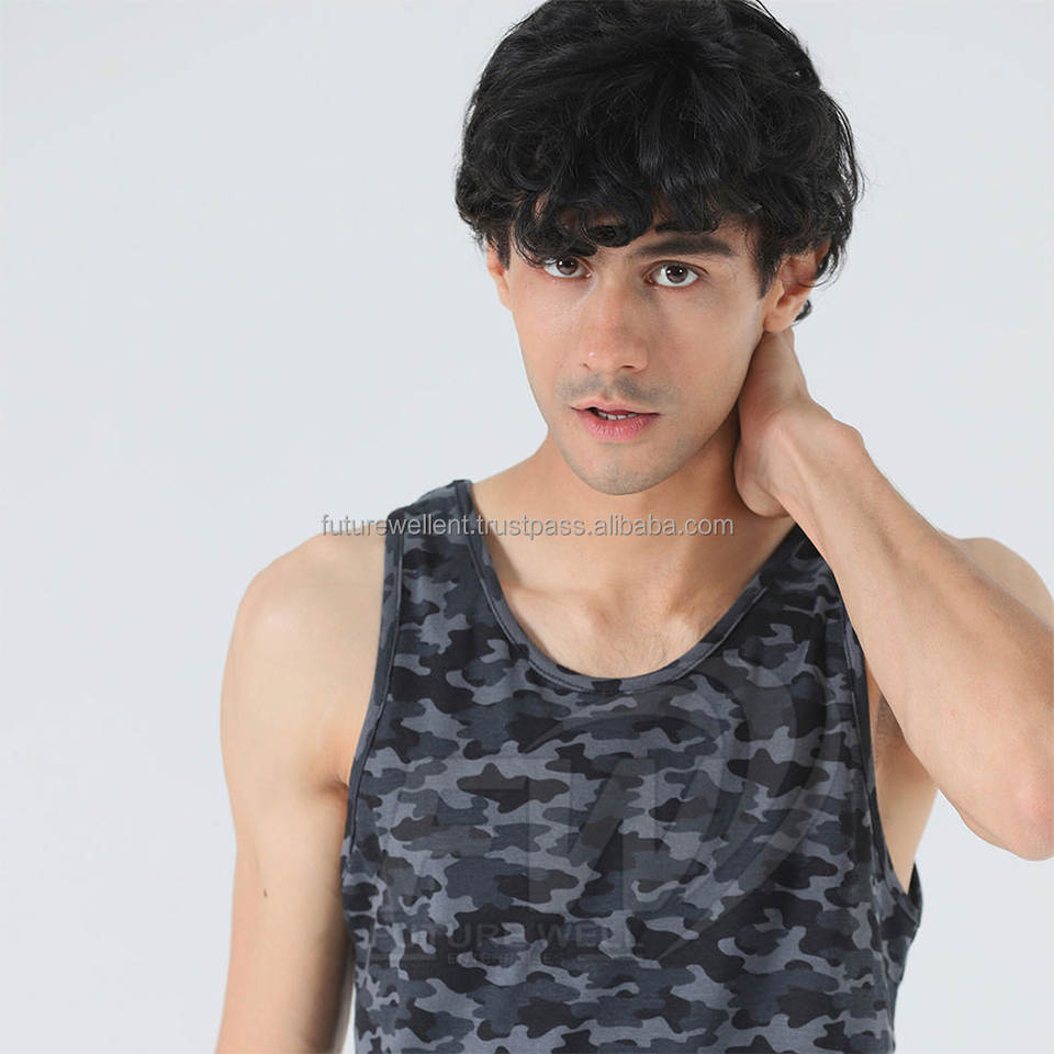 Mejor Venta Camo Imprimir Algodón Poliéster Venta al por mayor por encargo Uso al aire libre Camisa sin mangas Hombres Camiseta sin mangas