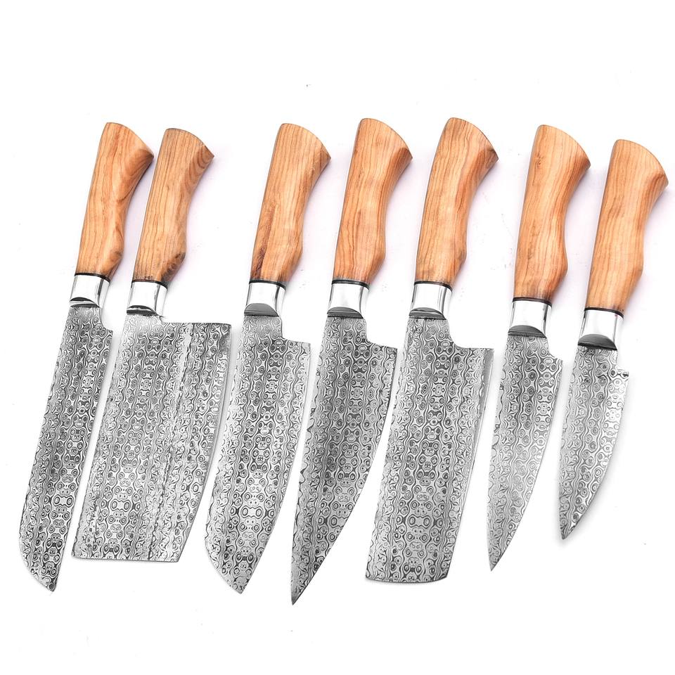 Juego de cuchillos de chef de alta calidad con mango de madera y hoja grabada a la venta