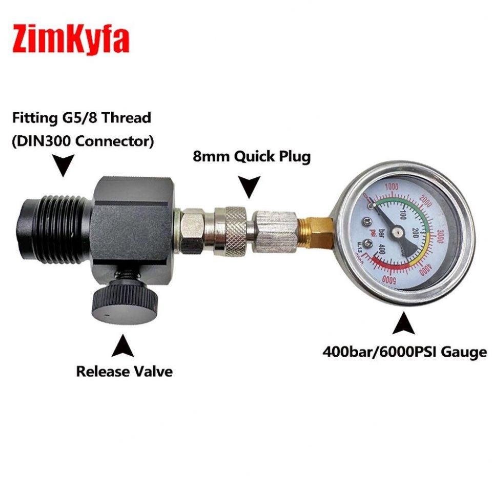 Mejor verificador de presión para cilindros de buceo con manómetro preciso de 400 bar/6000 psi, fácil de leer, compatible con OEM y personalizable.
