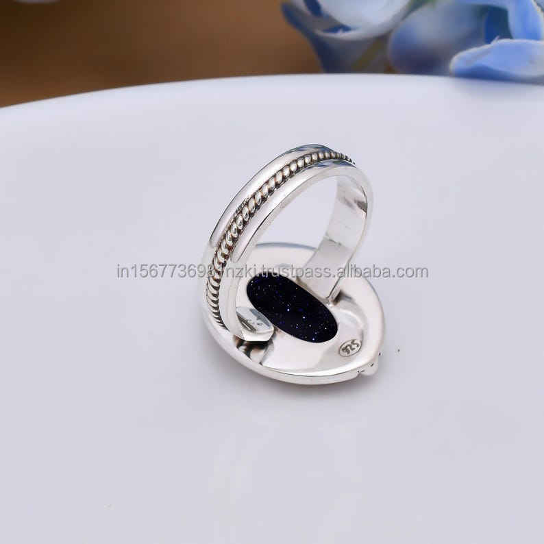 Mejor venta plata esterlina 925 sólida azul Sunstone anillo hecho a mano joyería de mujer con chapado en rodio regalo para ella
