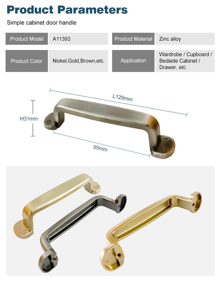 Característica:Aleación de zinc, alta dureza, textura elegante, practicidad