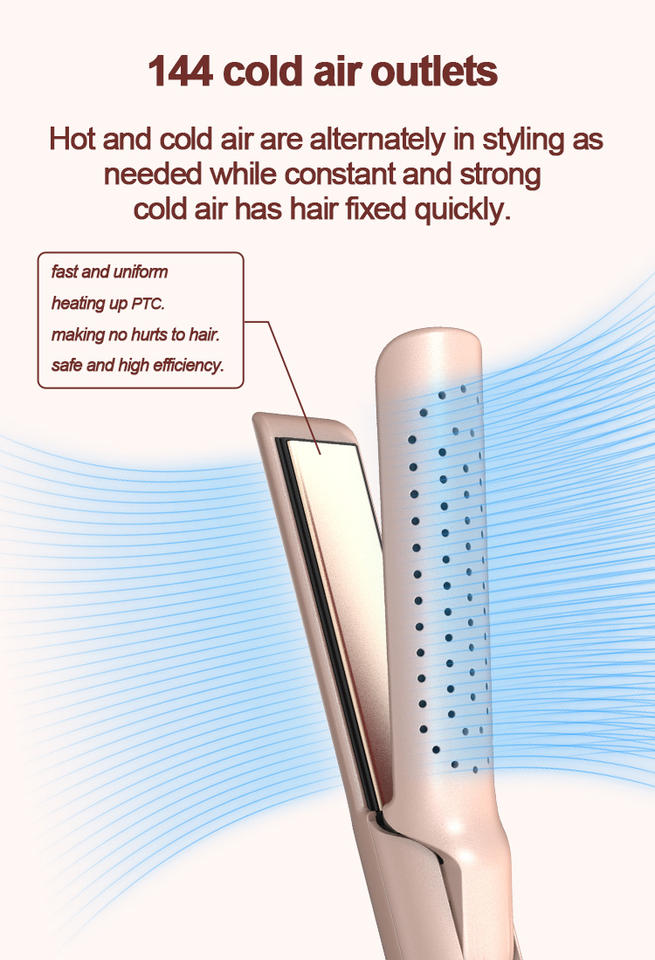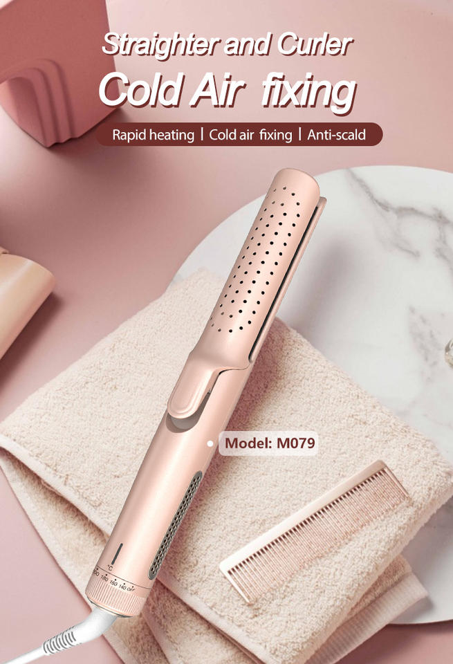 Best Seller 2-en-1 PTC NTC Plancha de pelo eléctrica Rizador de hierro LED Calentamiento rápido Flujo de aire frío Todo tipo de cabello Hogar Hotel