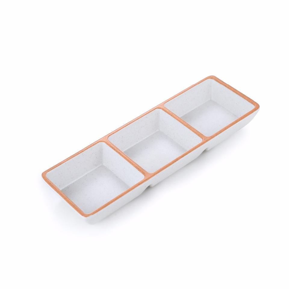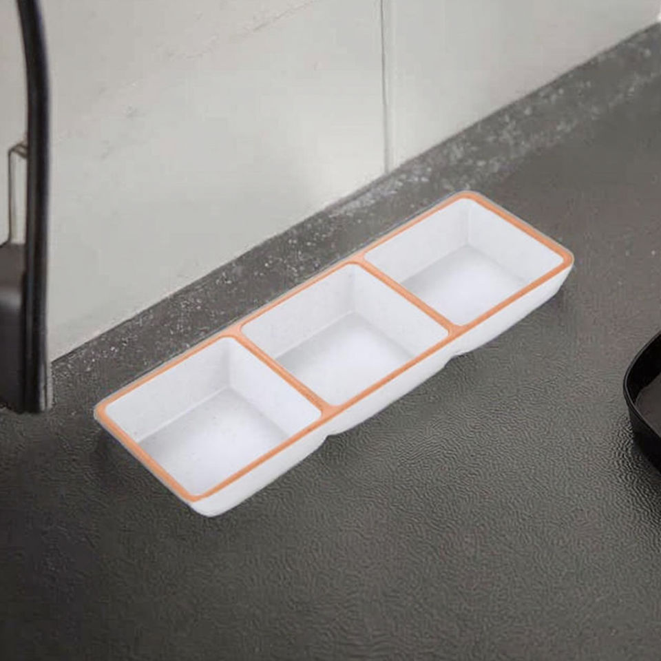Mejor vendedor plato de salsa de soja rectangular de 3 compartimentos para sushi
