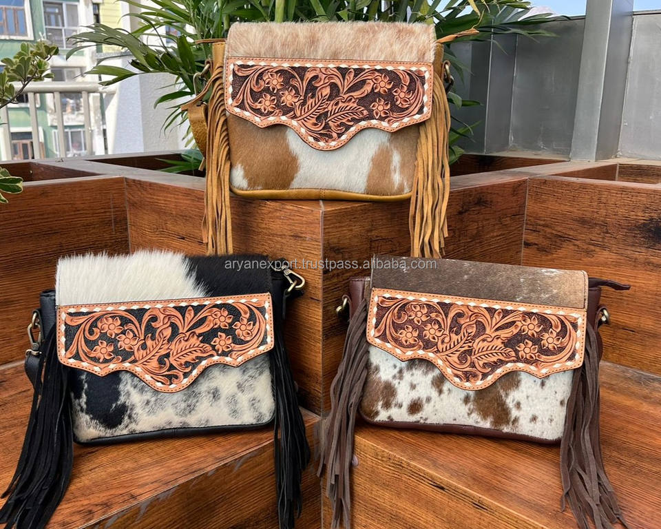 Product Name:Hand Tooled Cowhide Crossbody Fringe Bag