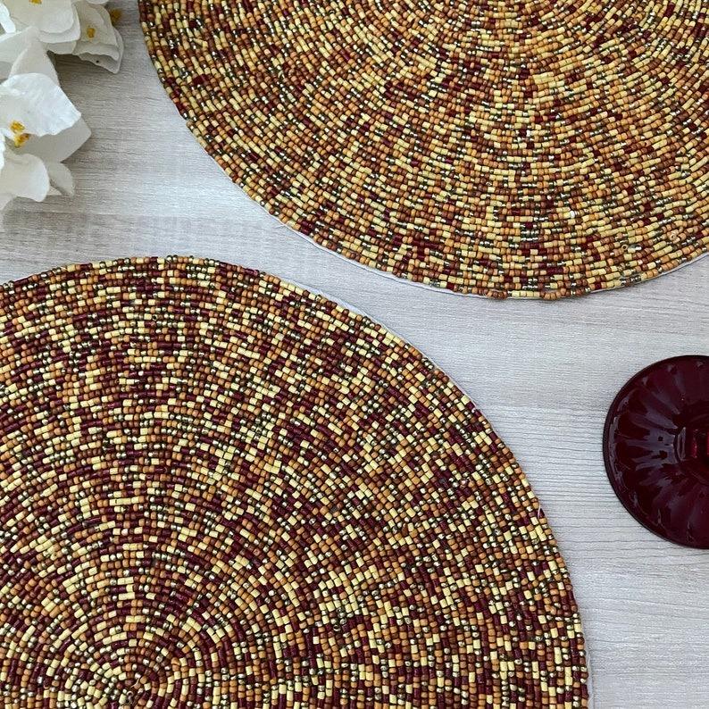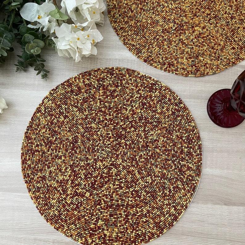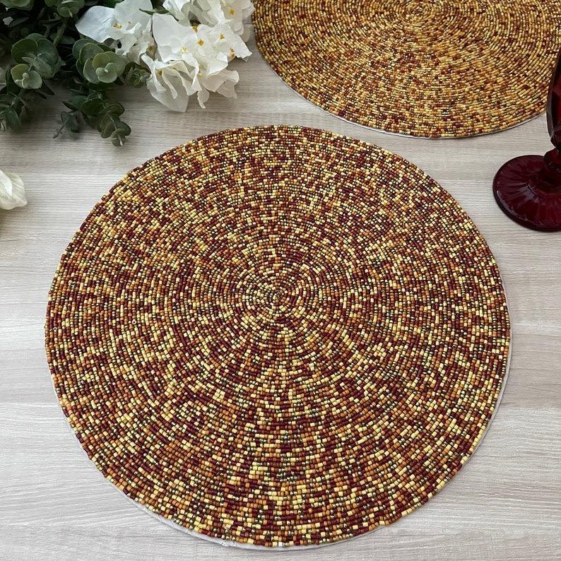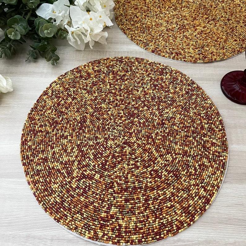 Manteles Individuales Bordados a Mano con Cuentas, Estilo Indio, Posavasos de Piedra de Vidrio Sólido, Decoración de Mesa Ecológica Personalizada para Bodas