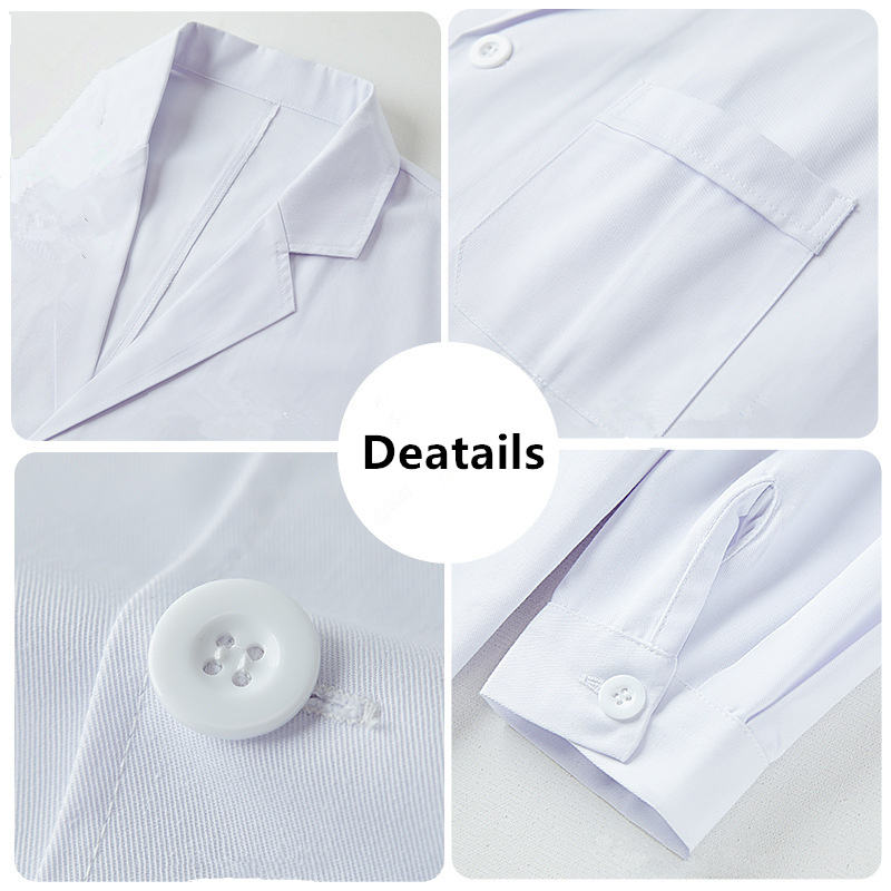 Nombre del producto:Unisex Hospital uniforme médico enfermera traje collar blanco bata de laboratorio