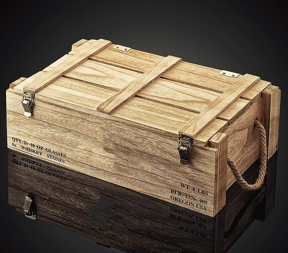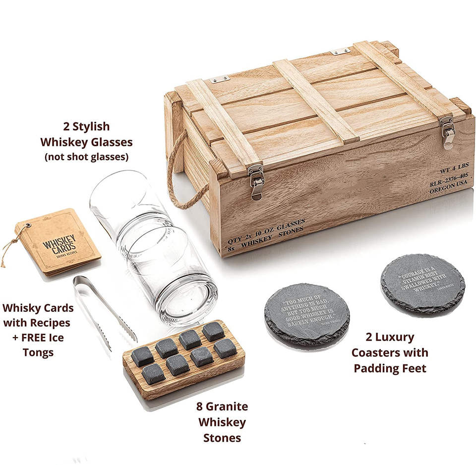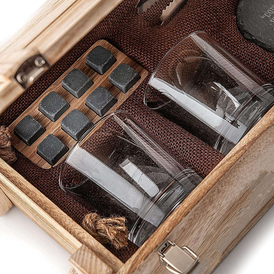 Piedras enfriadoras de whisky, juego de rocas de madera con vidrio y posavasos, el más vendido
