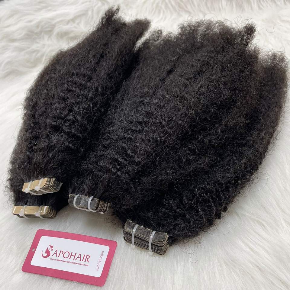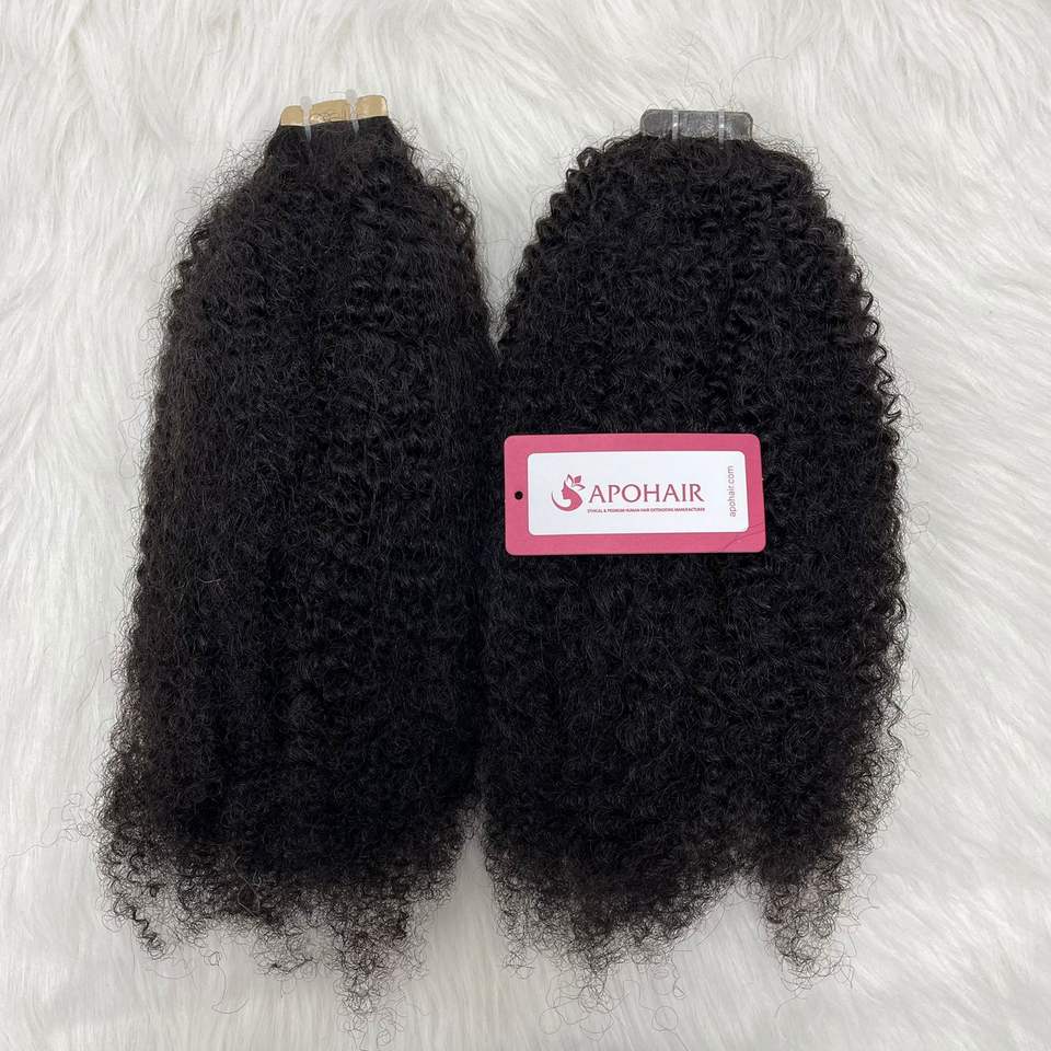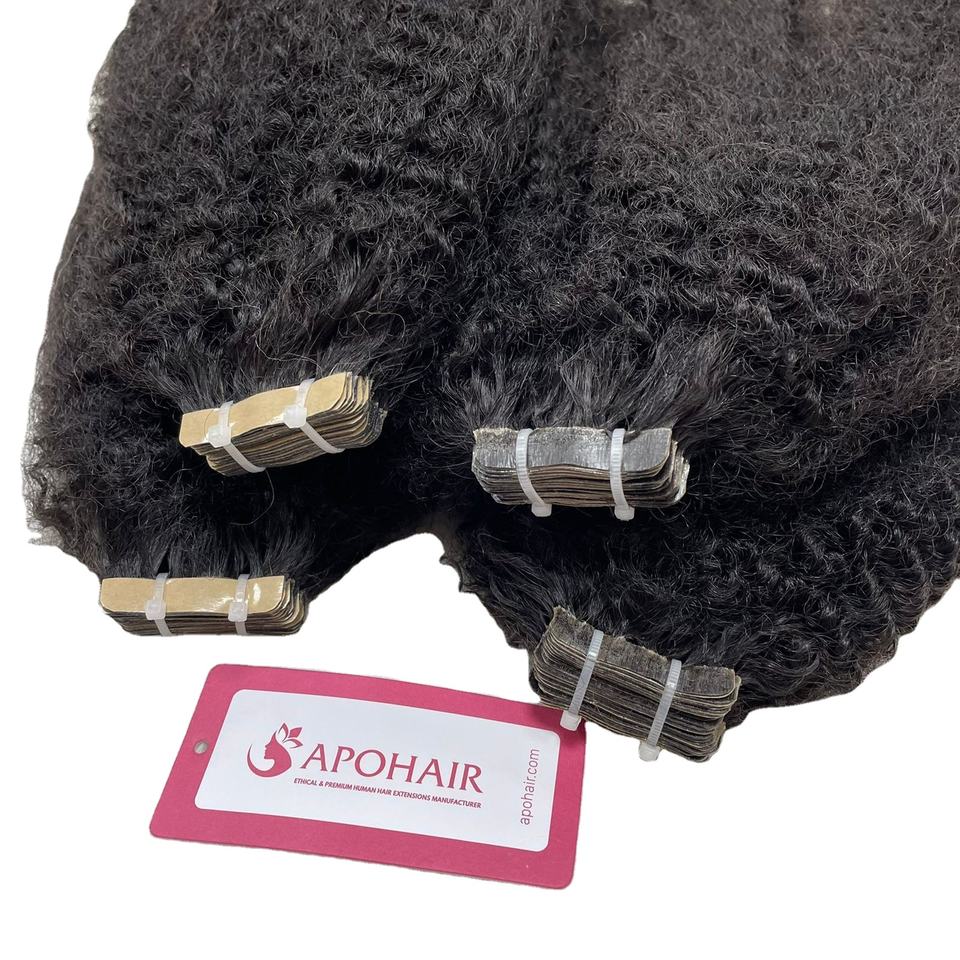 Superventas 100% extensiones de cabello humano Kinky Straight Natural Wave Tape en Dropship disponible