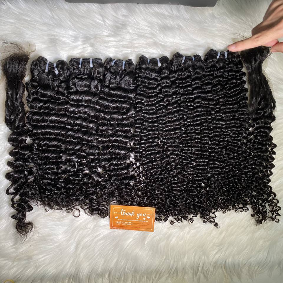 Extensiones de trama de cabello Remy vietnamita crudo 100% superventas, paquetes de larga vida útil rizados con agua