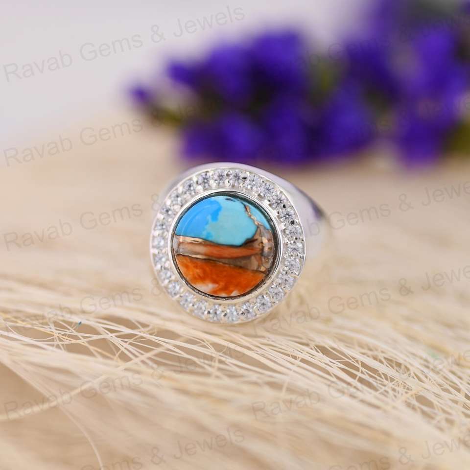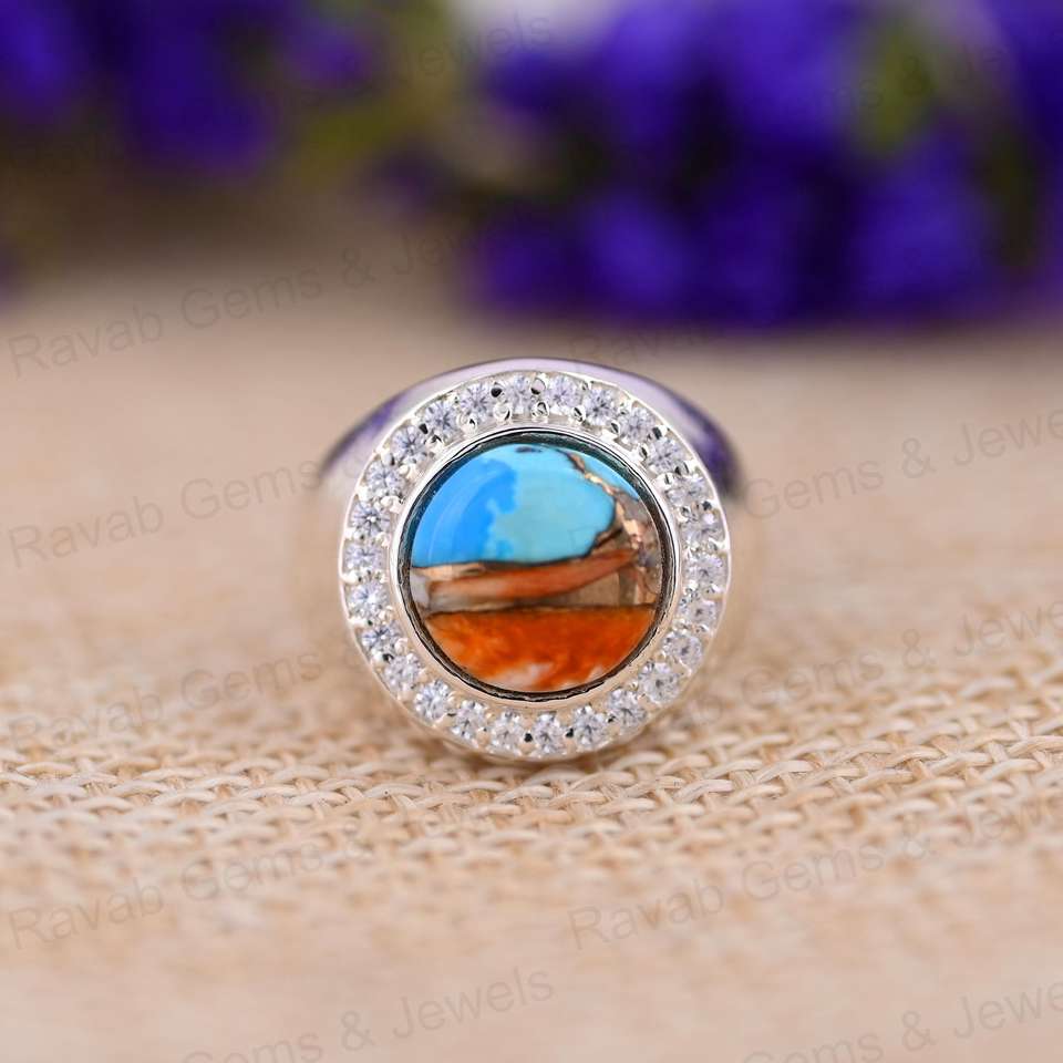Nombre del producto:Anillo Llamativo Oyster Cobre Turquesa Plata Mix
