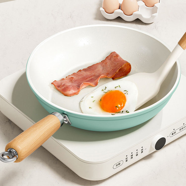 Mejor venta 22/24cm Cocina Cocina Antiadherente Huevos Steak Hierro Frier Pan Antiadherente Cerámica recubierta sartén con tapa