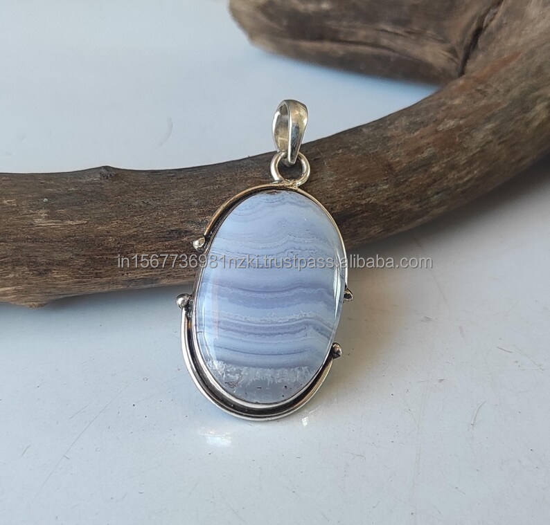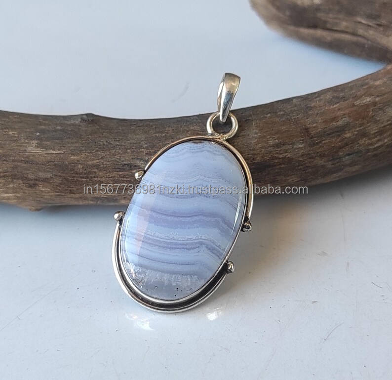 Nombre del producto:Colgante de Plata de Ley 925 con ágata de encaje azul
