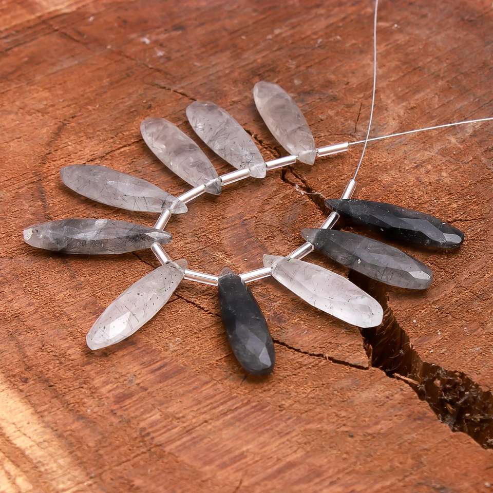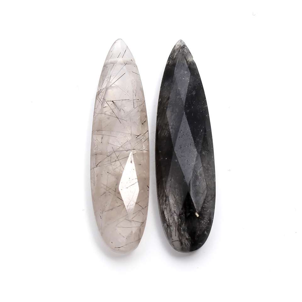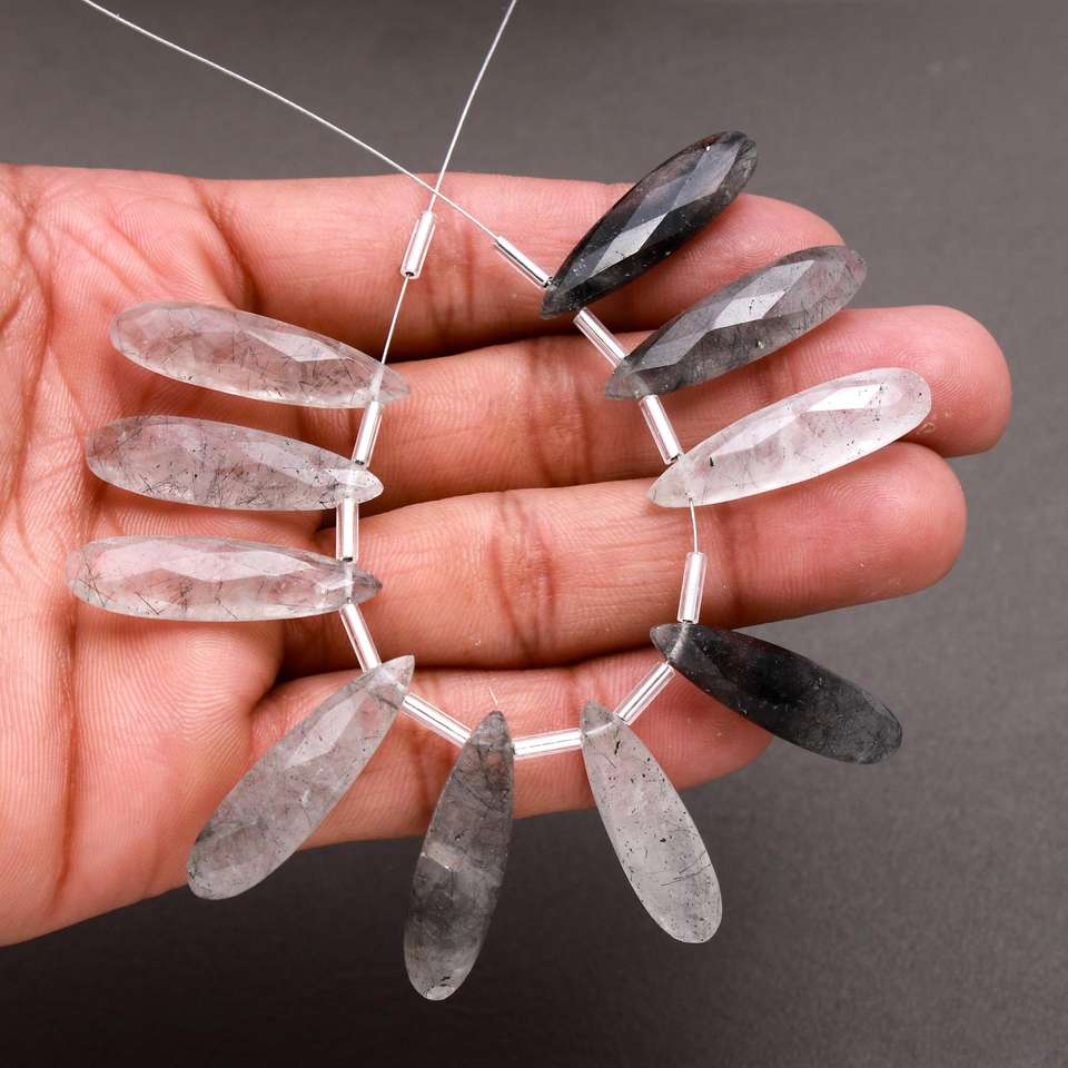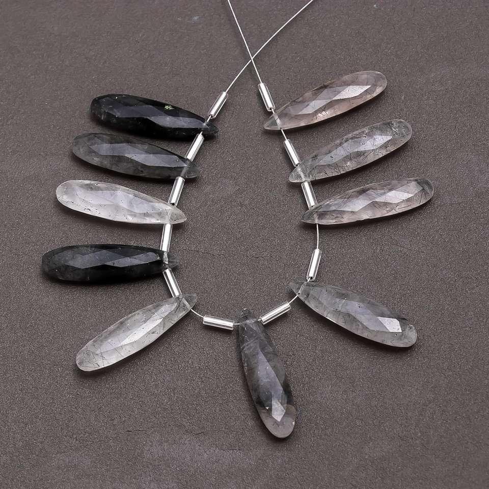 Pares combinados de Briolette con forma de lágrima larga de rutilo negro de grado AAA más vendidos para hacer pendientes de verano, cuentas de joyería
