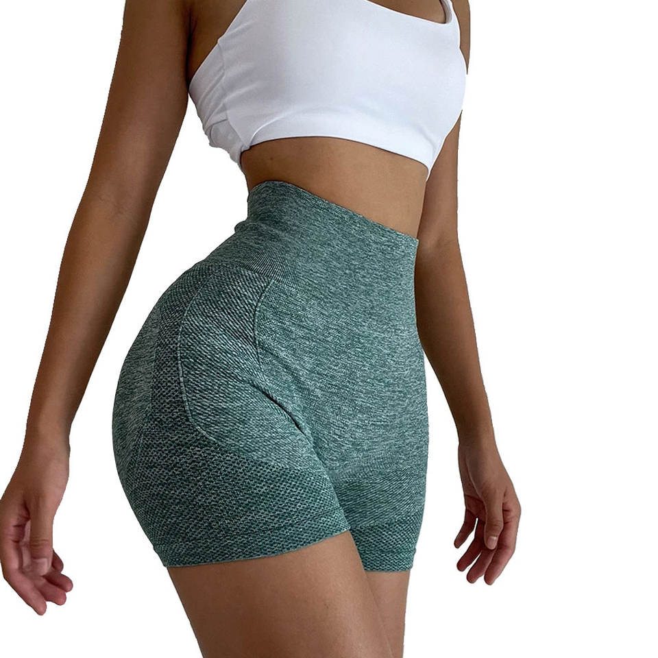 Pantalones cortos deportivos de alta calidad con diseño de línea sin costuras para mujer